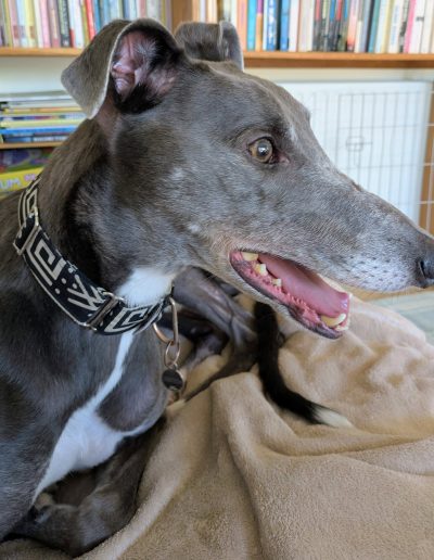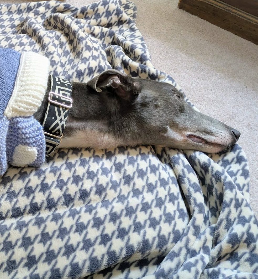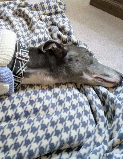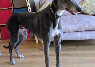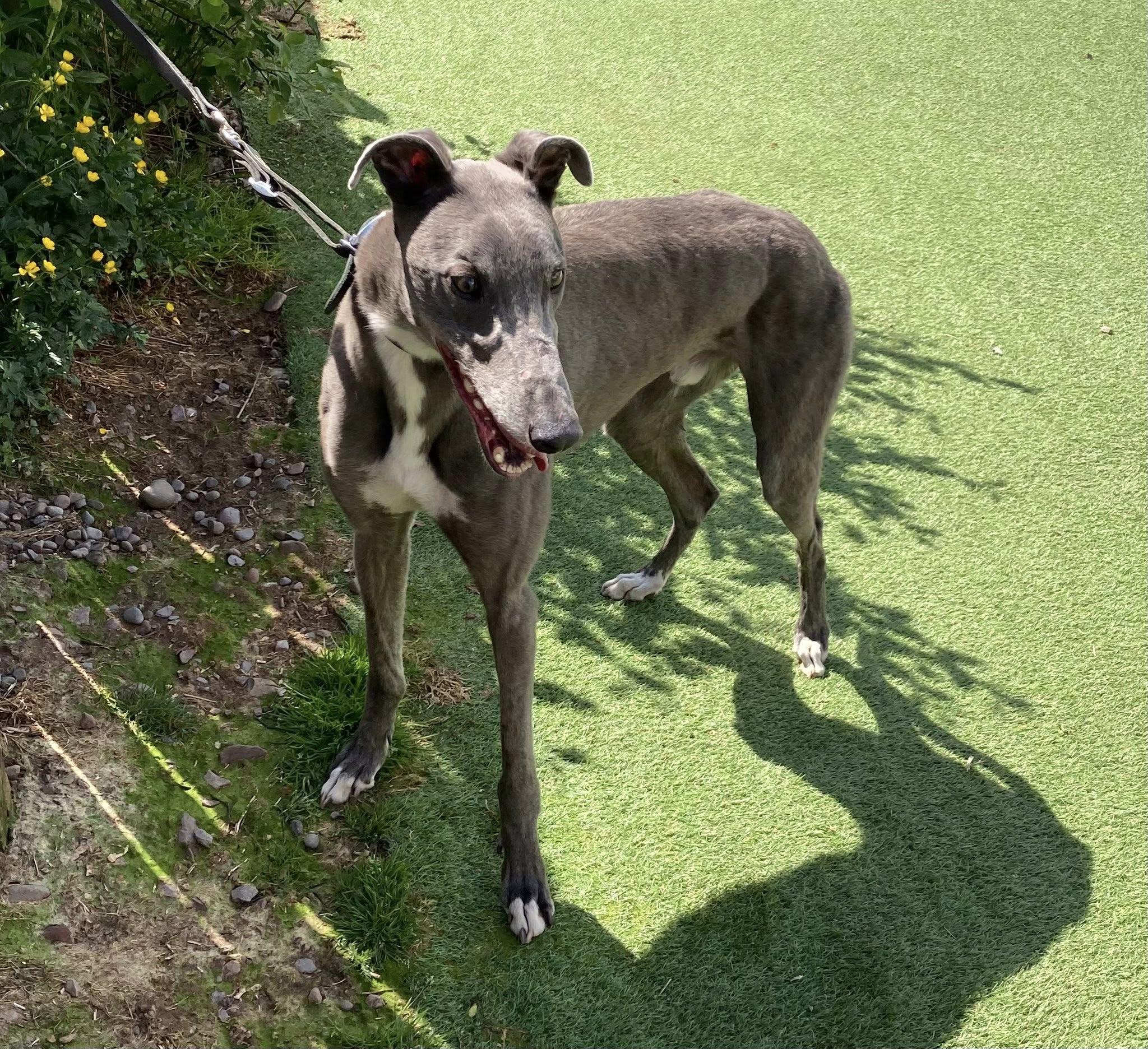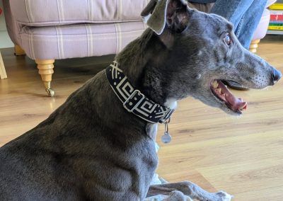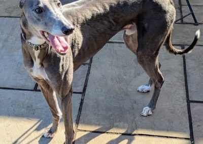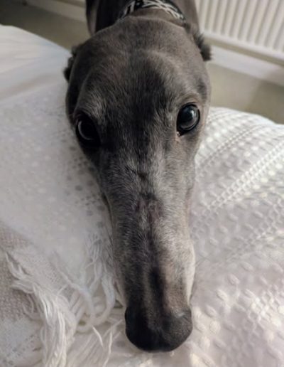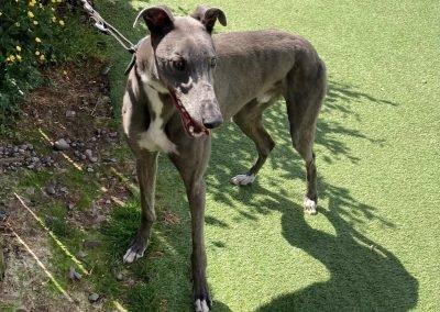He enjoys playing with his greyhound friends, loves his walks, and is an absolute gentleman on the lead. He is very gentle with dogs he meets out and also travels so well in the car, making him the perfect adventure buddy or relaxed companion.